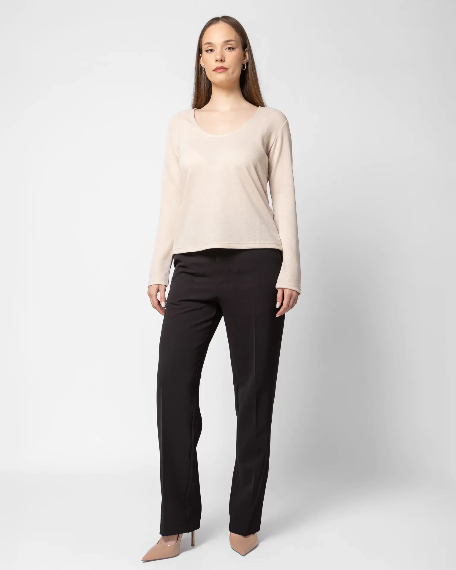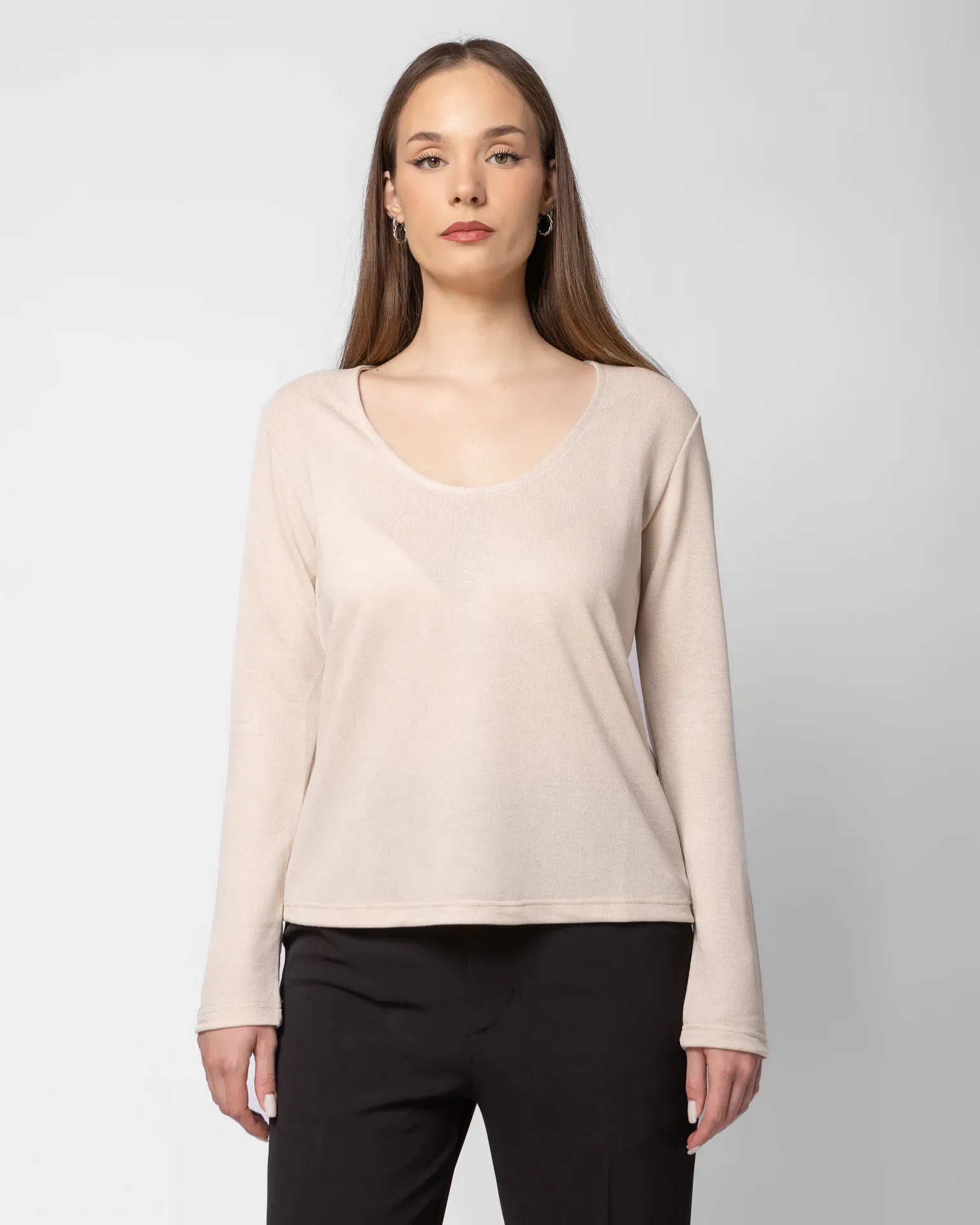 Μπλούζα μακρυμάνικη με στρογγυλή λαιμόκοψη σε γκρι χρώμα.