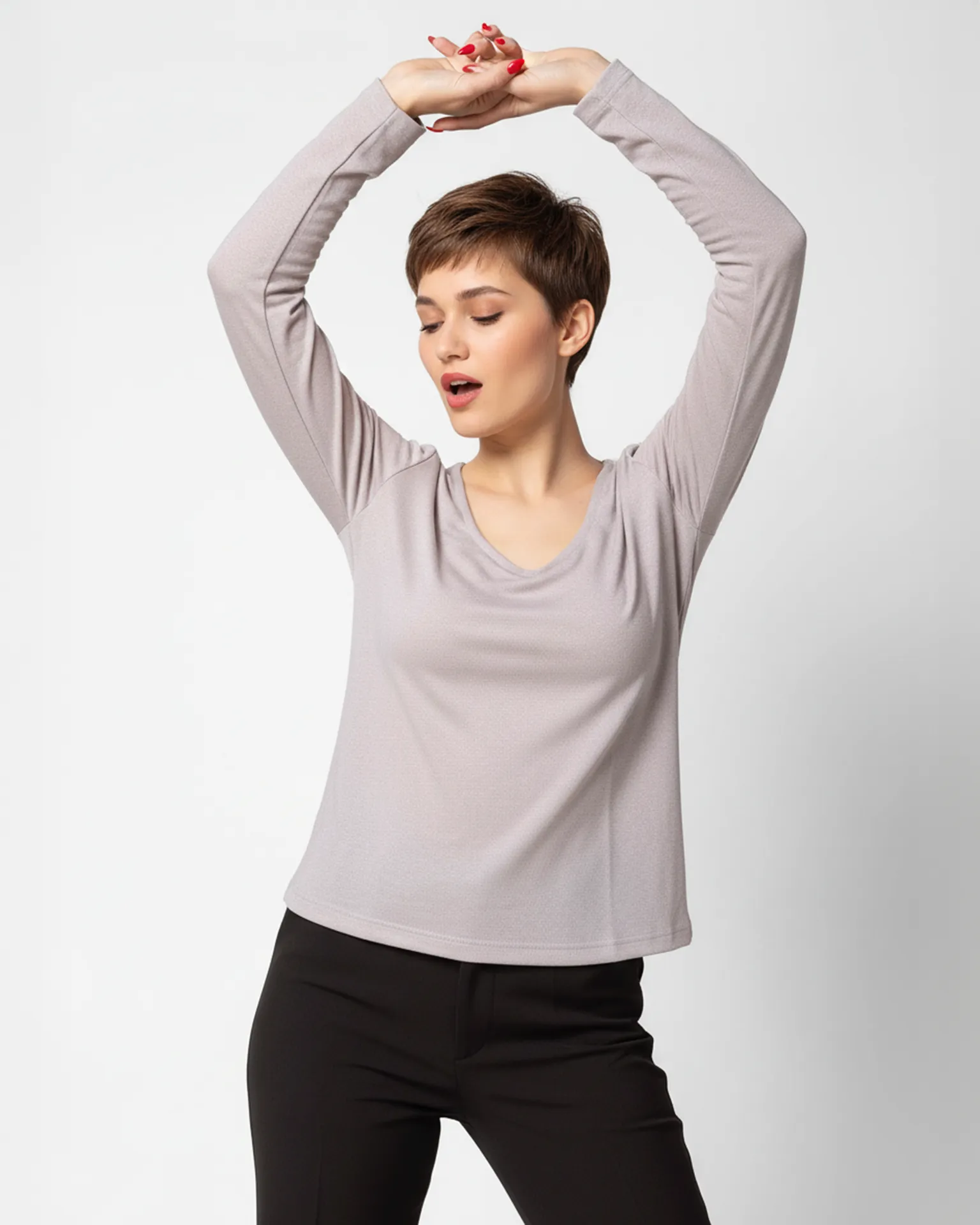 Ανακαλύψτε την απόλυτη άνεση και το κομψό στυλ με αυτή την μακρυμάνικη μπλούζα με τη στρογγυλή λαιμόκοψη. Ο ανοιχτός λαιμός προσδίδει μία νότα θηλυκότητας και μοντέρνας αισθητικής. Είναι ιδανικός για να δείξετε και να συνδυάσετε με ένα κομψό κόσμημα. Τα μακριά άνετα μανίκια της προσφέρουν ευελιξία και ζεστασιά. Ιδανική για κάθε μέρα, μπορεί να συνδυαστεί με τζιν, παντελόνια ή φούστες, δημιουργώντας έναν απλό και στιλάτο look. Η μπλούζα αυτή θα γίνει αμέσως το αγαπημένο σας ρούχο στην γκαρνταρόμπα σας. Η σύνθεση 100% βαμβάκι είναι ιδανική και επιτρέπει στο δέρμα σας να αναπνέει.