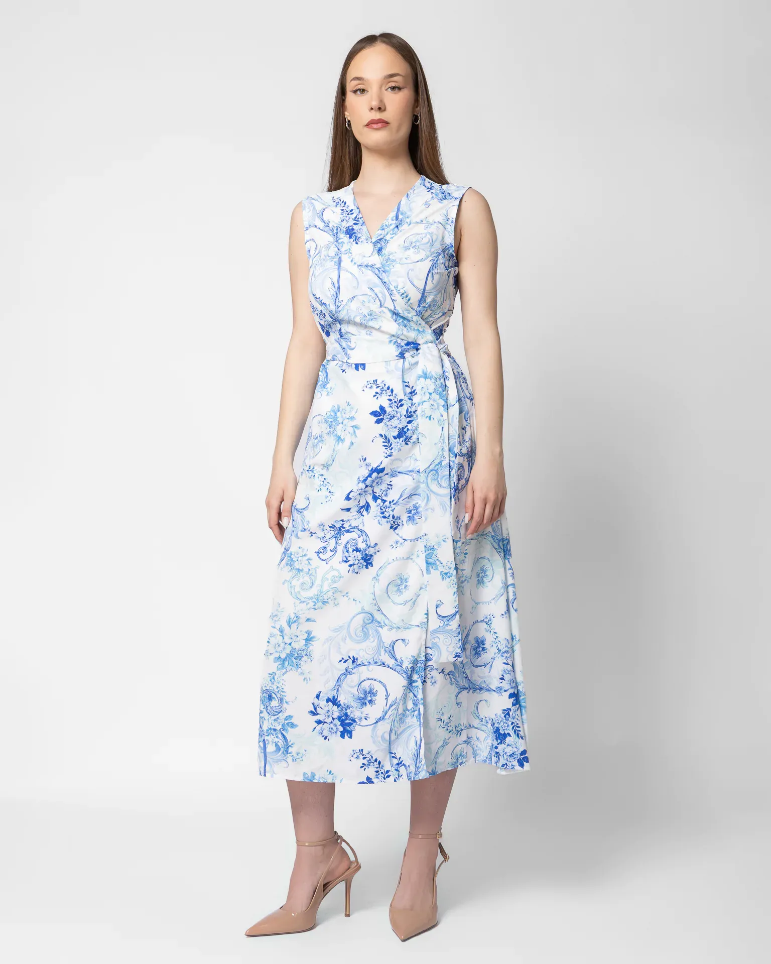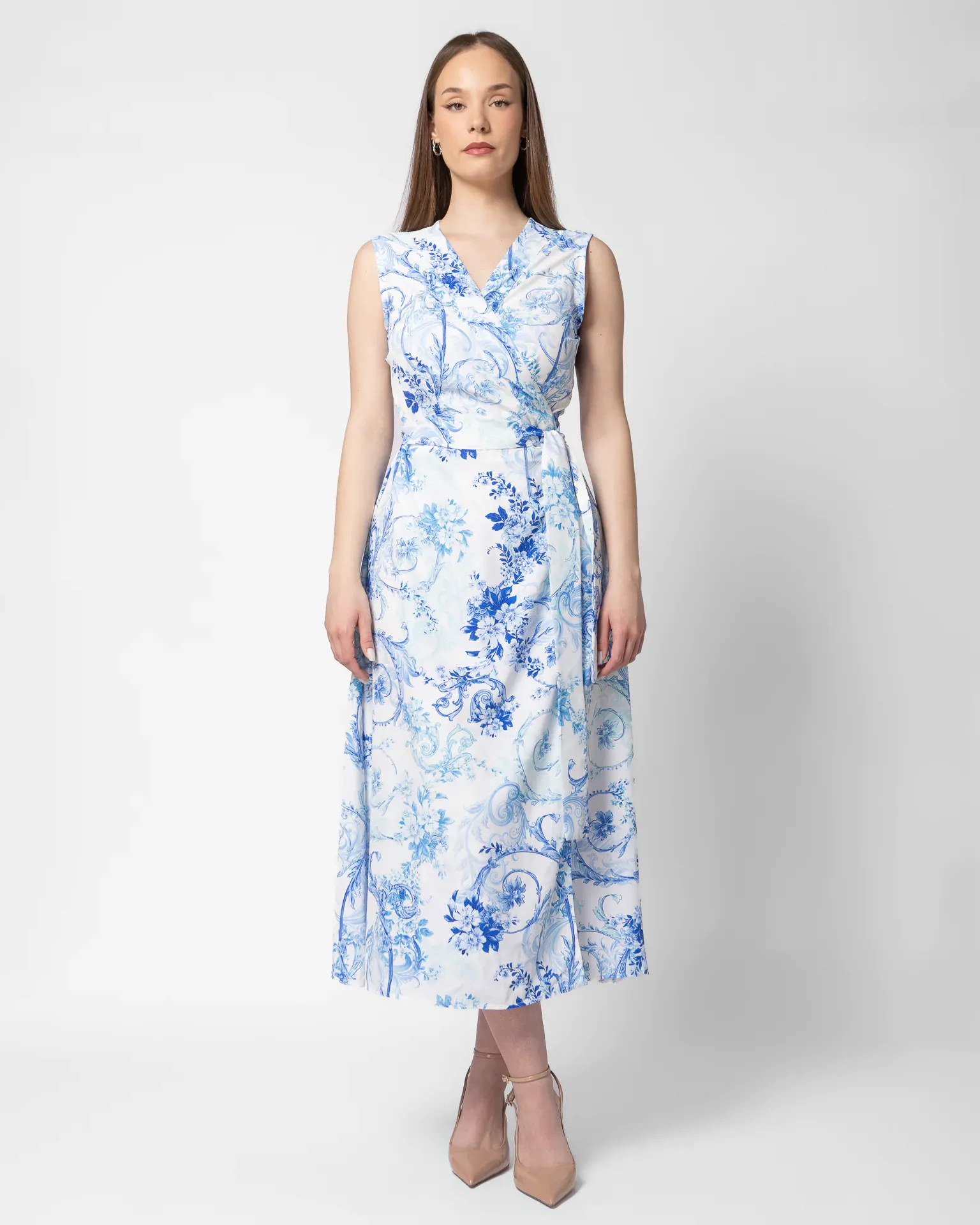 Asia Blue midi φόρεμα wrap / κρουαζέ